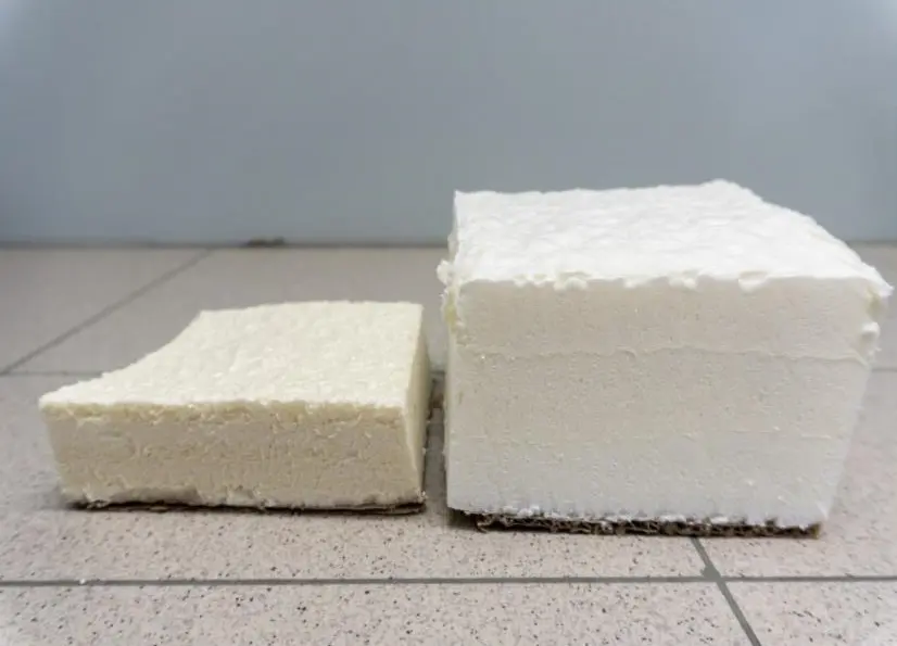 Если материал не вспенился, пена хрупкая или эластичная, проверить компоненты (марку, срок годности), правильность дозирования, установленные параметры температуры и давления компонентов. Произвести повторное напыление.